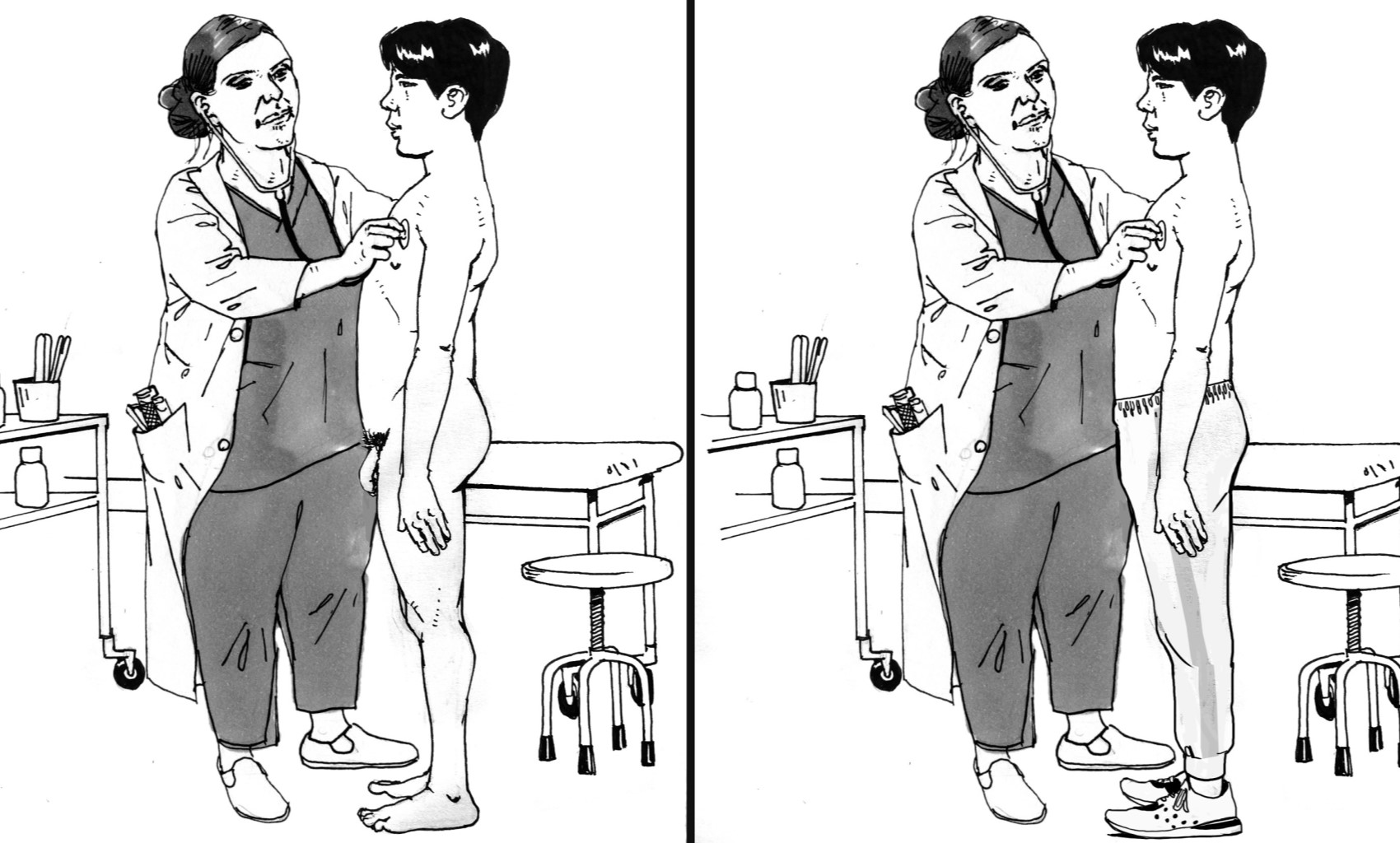 Дополнете дека докторката нема секогаш да го прегледува Вашиот син/ученик/роднина/корисник, гол. Но, може да се случи некогаш да биде потребно тој да биде гол, за да докторката го прегледа.