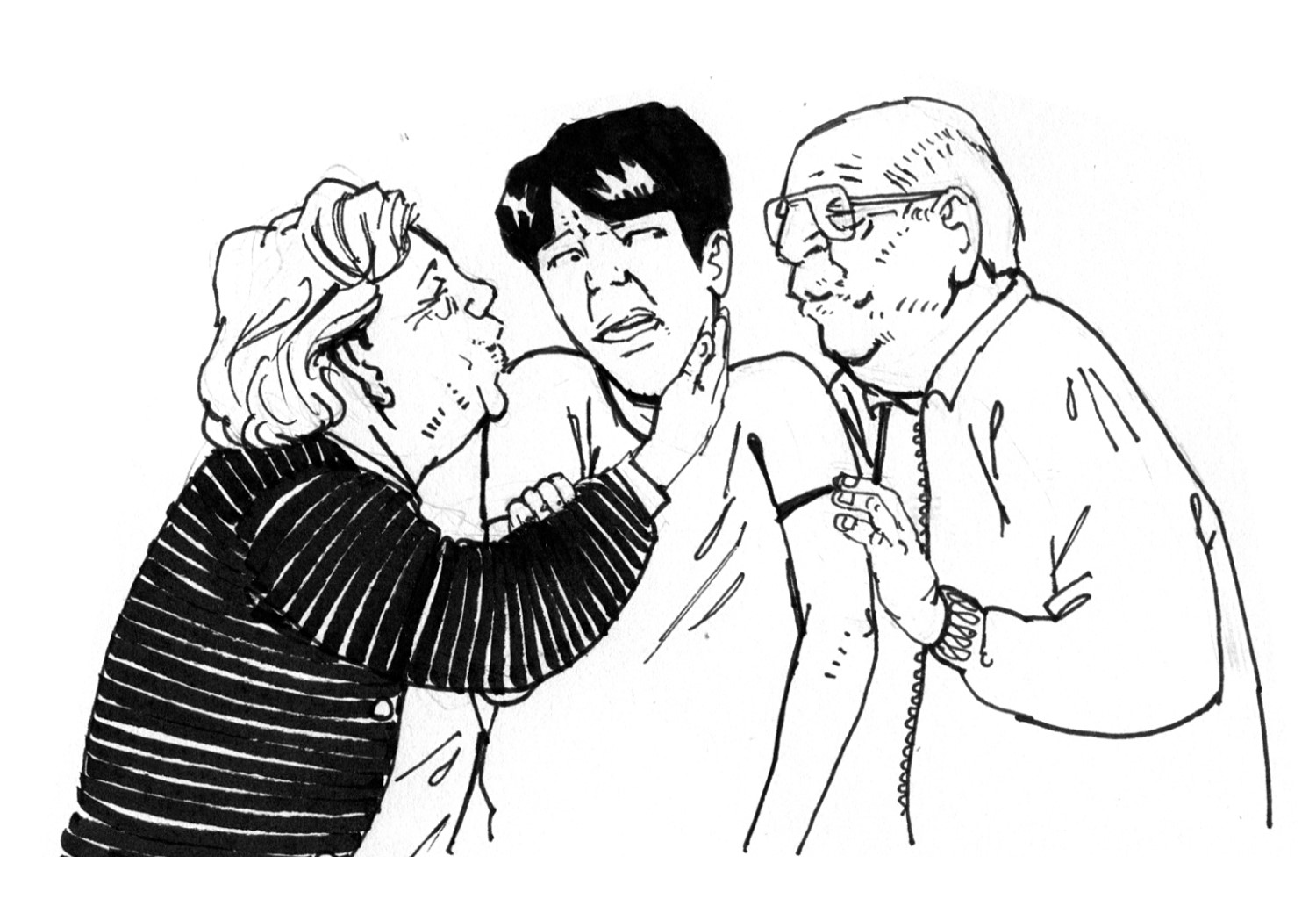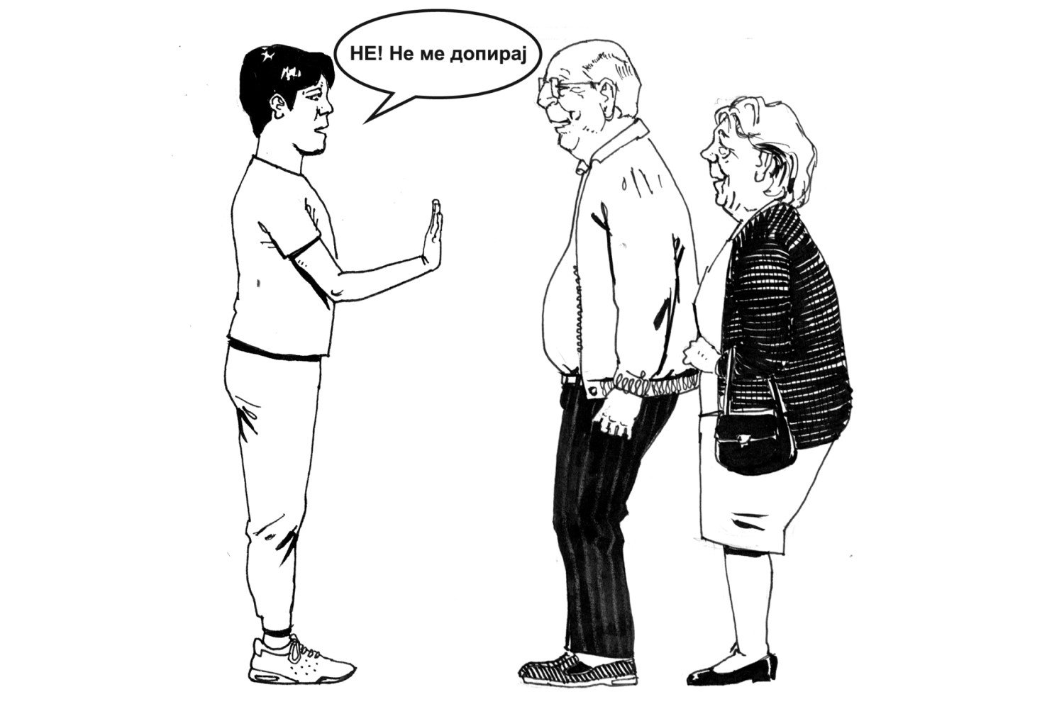 Од особено значење е Вашето дете/ученик/роднина/корисник да знае дека непријатни допири може да искуси од сите блиски луѓе, меѓу кои и роднините. Затоа е важно да се претстави оваа можна ситуација, за да истата биде препознаена доколку се случи. Ликовите на илустрацијата именувајте ги согласно роднините кои се присутни во опкружување на Вашето дете/ученик/роднина/корисник (тетка, чичко, вујко, вујна, братучеди и сл.).