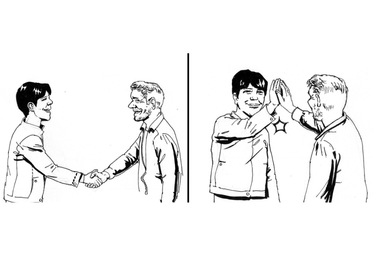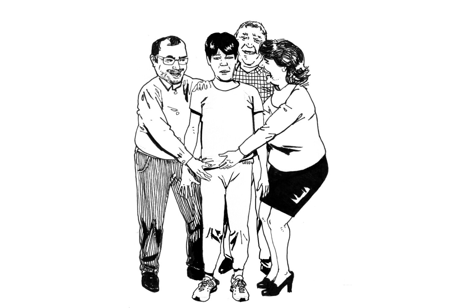 Опишете ја лицевата експресија (збунет, изненаден, лут и сл.) и поставеноста на телото (згрчен, се обидува да се одбрани и сл.) и нагласете дека токму од лицето и телото се гледа дали на момчето му е пријатно или непријатно.