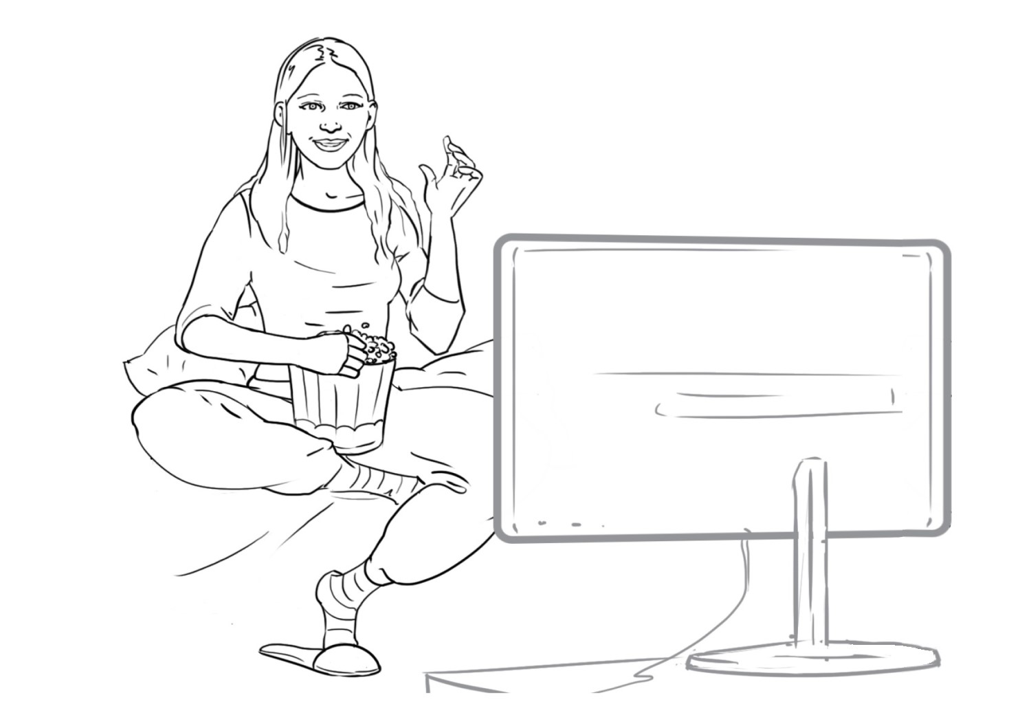Опишете ја лицевата експресија на девојката претставена на илустрацијата. Побарајте од Вашата ќерка/ученичка/роднина/корисничка да каже како таа се чувствува кога ја јаде нејзината омилена храна и воедно да покаже каков израз на лицето има (како и изгледа лицето) кога ја јаде токму омилената храна/омиленото јадење. Предложените активности изведувајте ги пред огледало. Доколку сте во можност искористете природна ситуација кога опишаната активност Вашата ќерка/ученичка/роднина/корисничка ја практикува спонтано за да дискутирате како таа се чувствува.