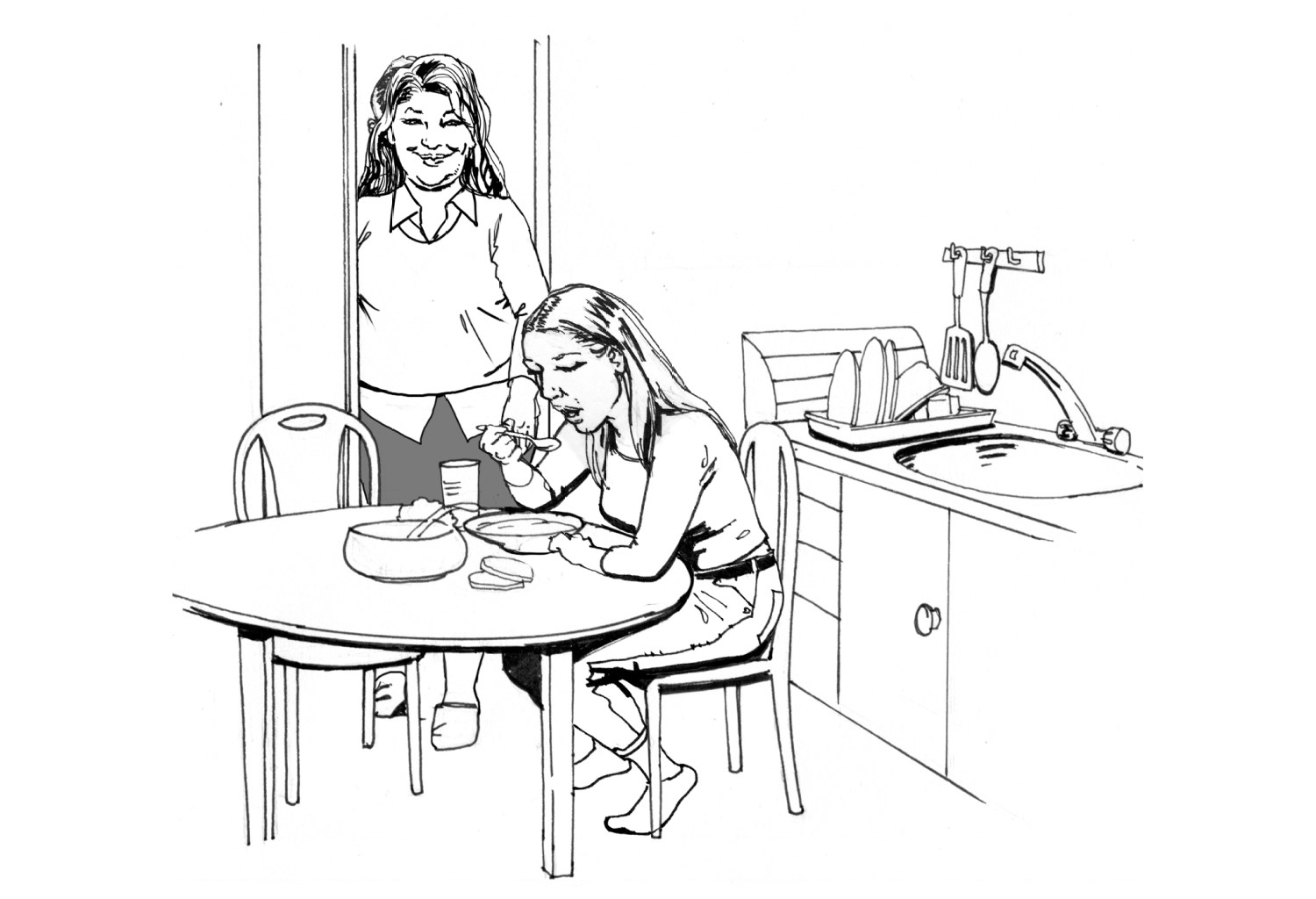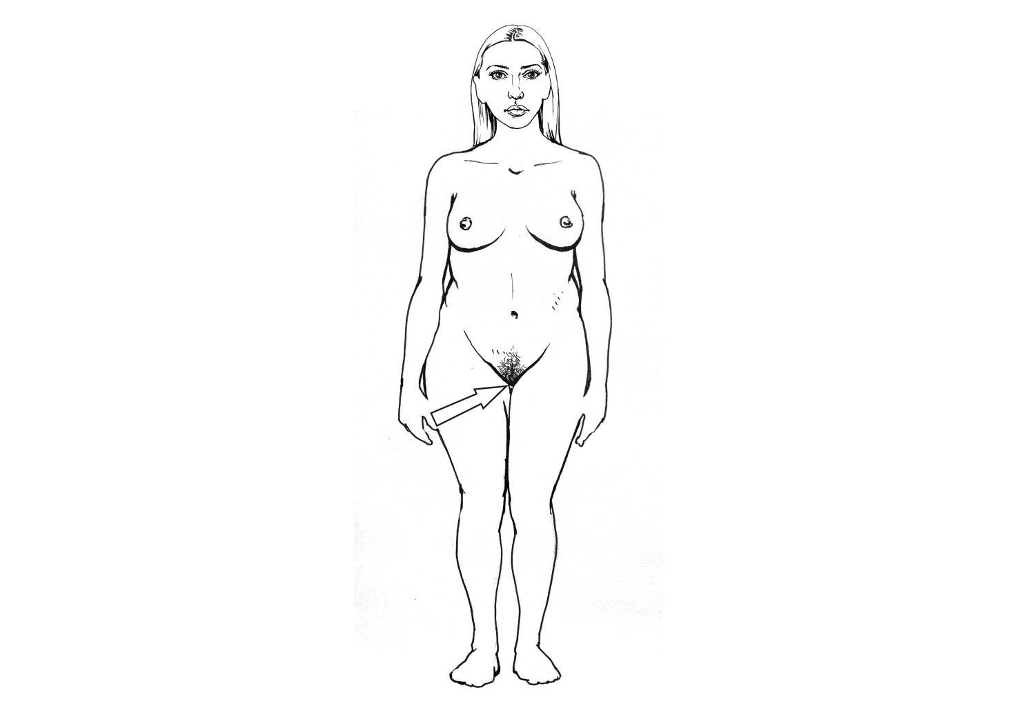 Заедно со Вашата ќерка/ученичка/роднина/корисничка на сликата посочете ја вагината. Побарајте таа да ја посочи вагината на сопственото тело. Доколку имате услови активноста изведувајте ја пред огледало. Наведете ситуации, од секојдневието, во кои Вашата ќерка/ученичка/роднина/корисничка ја гледа и допира својата вагина (на пример кога моча, се облекува, соблекува, бања итн.)