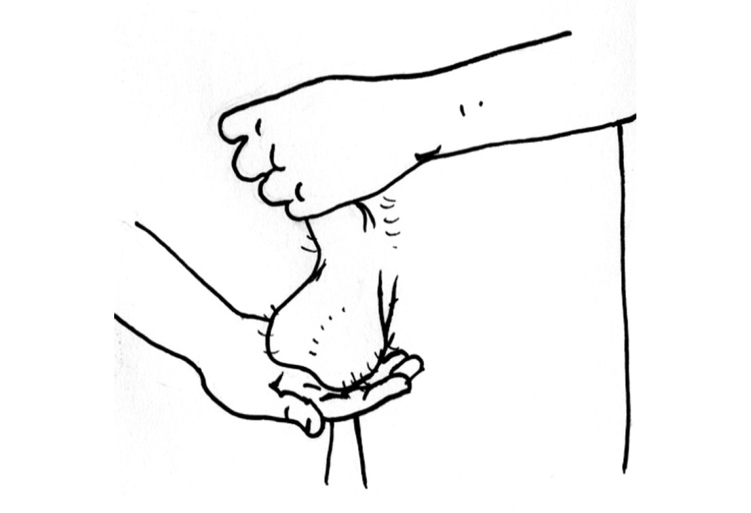 Заедно со Вашето дете/ученик/роднина/корисник на сликата посочете ги тестисите. Побарајте тој да ги посочи тестисите на сопственото тело. Доколку имате услови активноста изведувајте ја пред огледало. Потенцирајте ја местоположбата на тестисите (позади пенисот). Наведете ситуации, од секојдневието, во кои Вашето дете/ученик/роднина/корисник ги гледа и допира своите тестиси (на пример кога моча, кака, се облекува, соблекува, бања итн.)