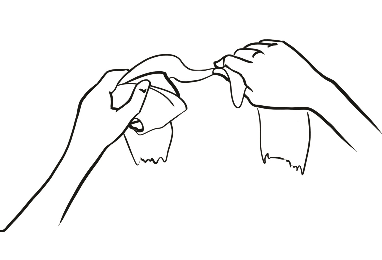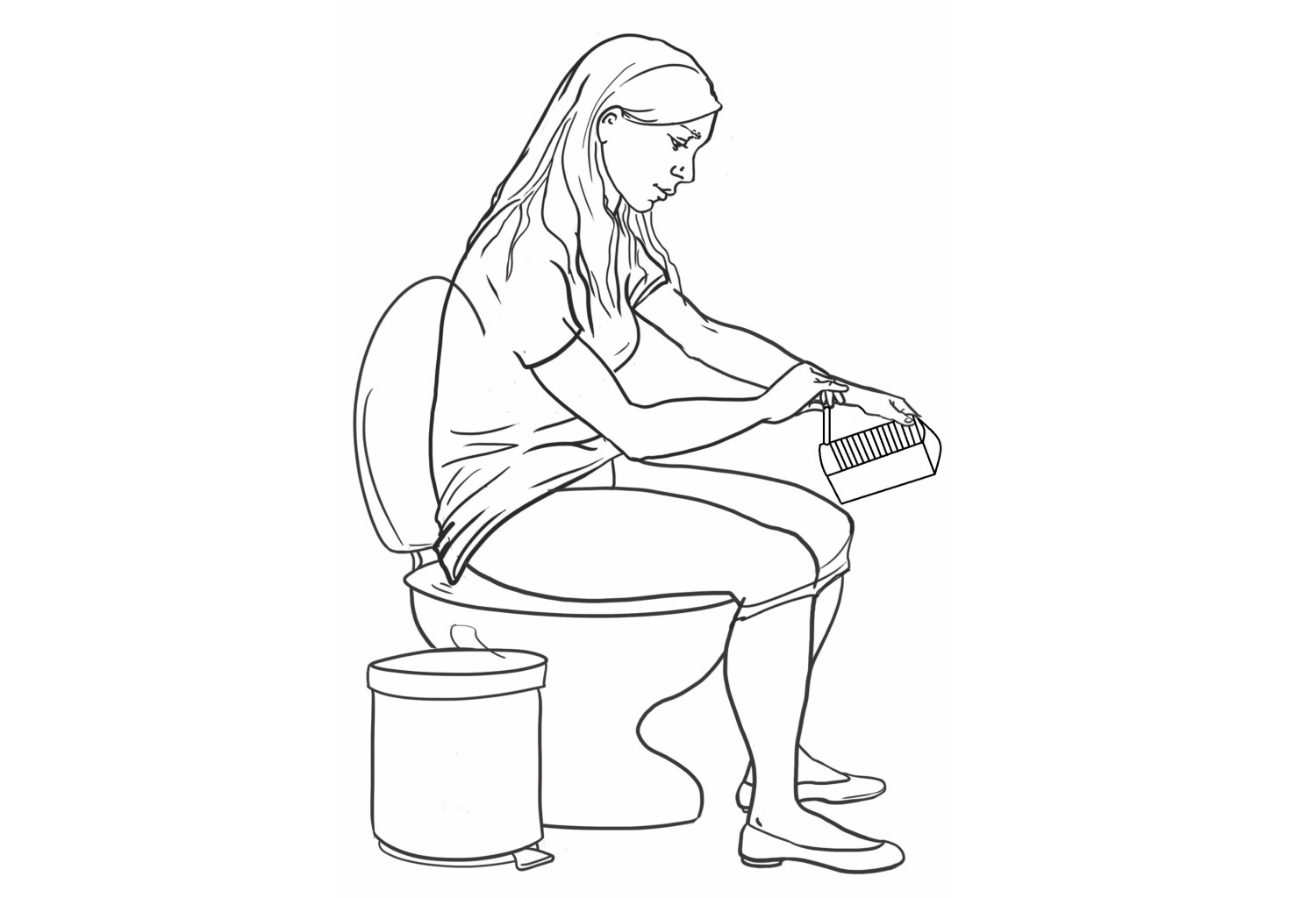 Нагласете дека е многу важно завитканата влошка да се фрла само во корпата за отпадоци. Согласно можностите на Вашата ќерка/ученичка/роднина/корисничка посочете дека во спротивно, доколку завитканата влошка ја фрли во шољата, таа ќе се затне. Доколку во WC нема корпа за отпадоци, тогаш посочете ја просторијата во која има корпа за отпадоци, во која може да ги фрли опаковката и хартијата (кујна, надвор пред влезна врата, двор и сл.). Користете модел за демонстрирање (завиткана влошка со обоена вода во тоалетна хартија) за да го претставите движењето, односно фрлањето на завитканата влошка во корпата за отпадоци. Демонстрирањето можете да го изведете Вие или на Вашата ќерка/ученичка/роднина/корисничка да примените техника рака врз рака, каде со Вашите раце ги движите рацете на Вашата ќерка/ученичка/роднина/корисничка за таа да ја изведе активноста. На овој начин го поттикнувате моторното учење кај Вашата ќерка/ученичка/роднина/корисничка.